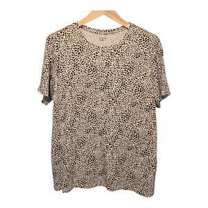 Lands End Top Womens Size 1X Leopard Print Crew Neck Short Sleeve Mob Wife