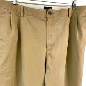 Lands' End Traditional Fit Pleated Chino Pants Men Size 38 Khaki Straight Leg