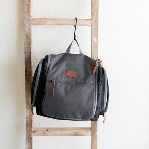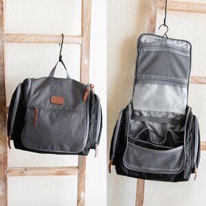 Land's End Travel Bag Gray Brown Leather Hanging Toiletry Organizer Shower Caddy
