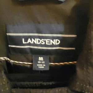 Lands End Jacket Black Womens Size Medium 8/10 Belted Pockets Button Down Mid length