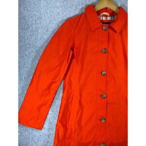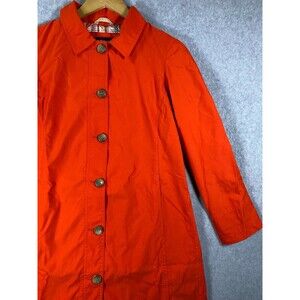 Lands' End Trench Coat Women's XS Petite Red Lined Pockets Button-Front Collared