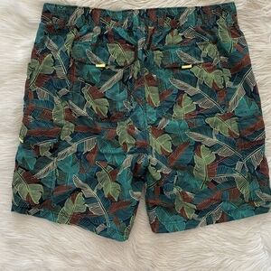 Lands' End Green Leaf Outrigger Quick Dry Cargo Swim board Shorts Like new. Size Large. Has pockets.