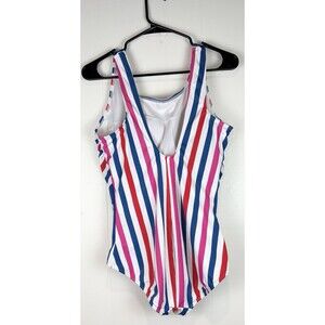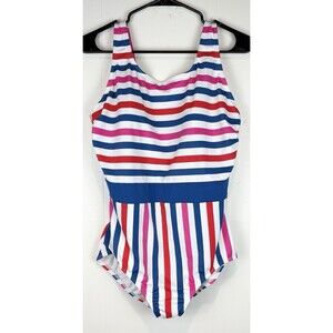 Lands End Tugless Striped Women's Bathing Suit Blue White Red Pink Swimsuit, 16W