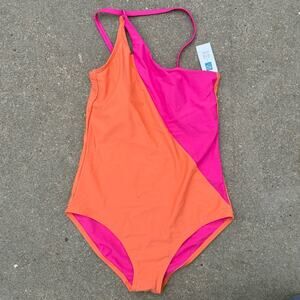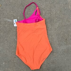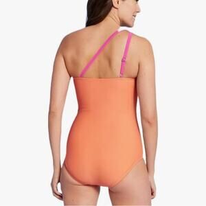 Lands' End Tummy Control One Shoulder One Piece Swimsuit Pink Orange MEDIUM NWT