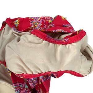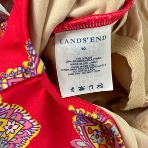 Lands End Tummy Support Tank Swimsuit Red & Pink Paisley size 10