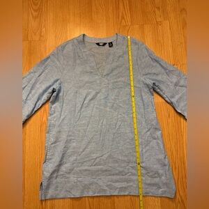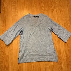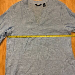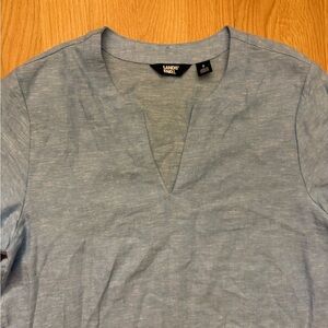 Lands End Tunic Blouse Womens Size Small Blue 3/4 Sleeve V Neck Linen Pockets