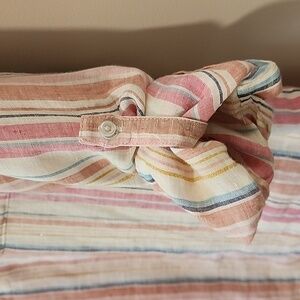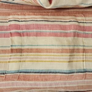 Lands' End Tunic Striped Linen Blouse Top Pastel Metallic Band Collar Button Front size Large 14/16