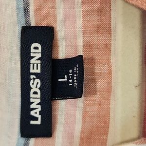 Lands End Tunic Striped Linen Blouse Top Band Collar Button Front size Large