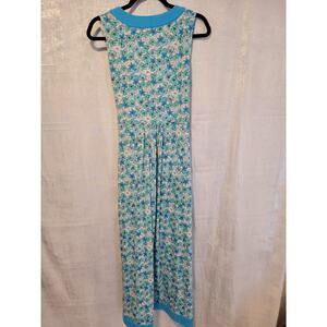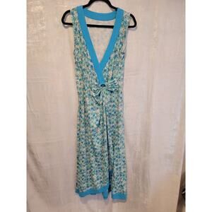 Land's End Turquoise Blue Floral Knit Surplice Midi Med Dress Sleeveless Beach Casual Vacation Bridal Shower Baby Shower Church Travel Comfy 299