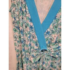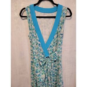 Land's End Turquoise Blue Floral Knit Surplice Midi Med Dress Sleeveless Beach