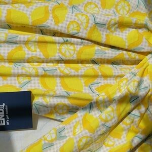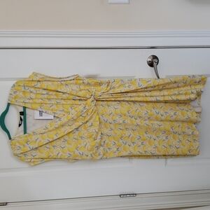 Women's Lands' End Twist-Accent Fit & Flare Yellow Lemon Check Dress.