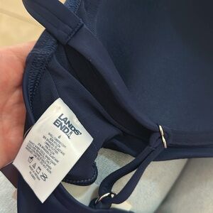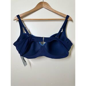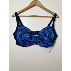 Lands End UPF 50 Blue Floral Print Underwire Twist Front Bikini Top Size 14.