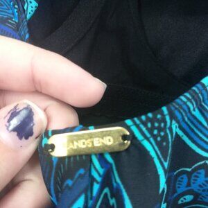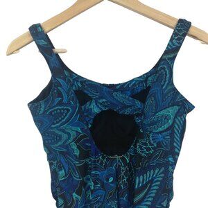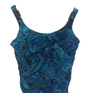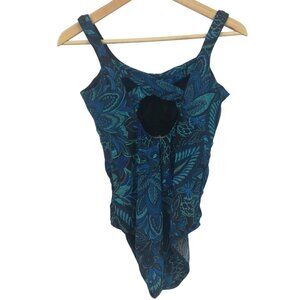 Lands End Underwire Slimming Paisley One Piece Swimsuit Size 8 Blue Ruching