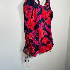 Lands’ End Underwire V Neck Tankini Size 14 Pink Red Navy Kauai Floral Side cinch Adjustable straps Excellent used condition Smoke and pet free home Ships next day
