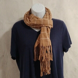 Lands End Unisex Rectangle Oblong Tassel Multifunctional Scarf Khaki Tan White