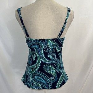 Lands End V Neck Blue/Green Paisley Underwire Tankini Swim Top Size 8 With removeable padding Great condition! Built in underwire bra
