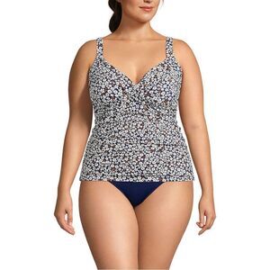 Land’s End V neck wrap Deep Sea Navy Ditsy Floral Tankini Floral underwire 10