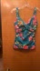 Inner tag may be marked for no return palm print bathing suit top