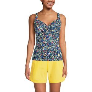 New Land’s End Plus Size and Standard sizes V wrap underwire tankini top deep sea navy bright floral adjustable in Various sizes below