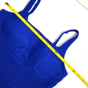The Lands' End V3403 One-Piece Navy Blue Padded Swimsuit in size 10 is a classic and colorful swimwear option for women. This one-piece swimsuit features a tank top style with spaghetti straps, making it comfortable and stylish for beach days or poolside lounging. The solid blue color is accented with a logo detail, while the padded design offers added support and comfort. Made from a blend of polyester, nylon, and spandex, this swimsuit is a practical and fashionable choice for any beach or pool wardrobe.