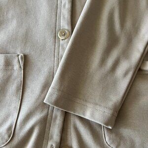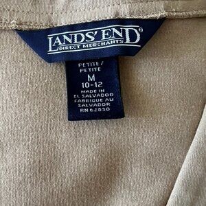This camel colored cotton cardigan was given to my mother as a gift and she never wore it as it was too large for her. It is made of 100% cotton that has weight and feels very soft. It measures 21" from pit to pit and is 28" from the shoulder to the hem, which makes it rather long for a petite person, unless it is meant to be tunic like. It's sized as between a 10 and 12, but it is their petite line.