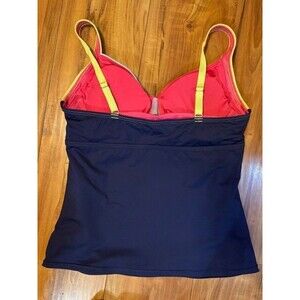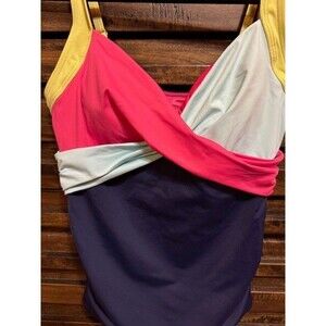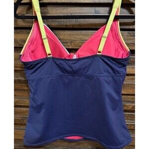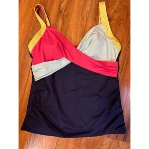 Lands' End V-Neck Wrap Underwire Tankini Top Navy Pink Sz 10 NWOT Colorblock