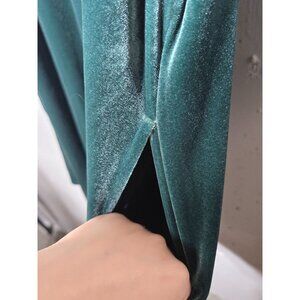 green stretch zip solid holiday Christmas Xmas December date night going out career business office work soft velour velveteen party long sleeve mock high cowl neck