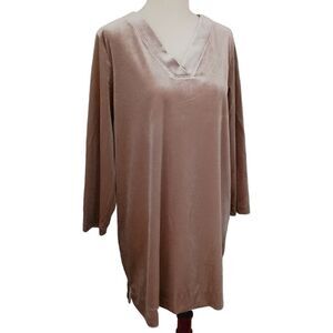 Lands End Velvet Tunic M Velour Preppy Cozy Warm Stretch Farmhouse Iridescent.  Condition is pre-owned and EXCELLENT condition.  Appears never worn.  Stretchy with an iridescent sheen.  No rips, tears, holes or discolorations.  Measures: Chest: 40" Shoulder to shoulder: 14" Length: 30"