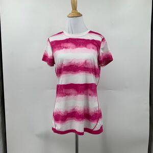 LANDS END VENTED SHIRT WOMENS S POMEGRANATE WHITE STRIPED GRADIENT ATHLETIC TEE