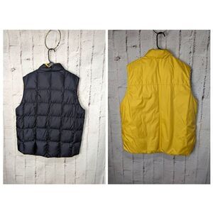 Lands End Reversible Vest Large L Black Yellow Goose Down Mens Puffer Full Zip Up