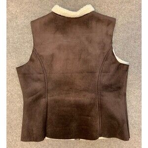 Lands End Vest Womens S/P (6-8) Sherpa Shearling Lined Vegan Faux Suede Zip-Up