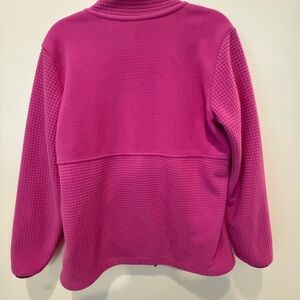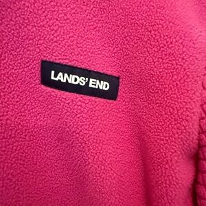 Bright pink fleece jacket by Lands' End. Features a soft texture and stylish design.