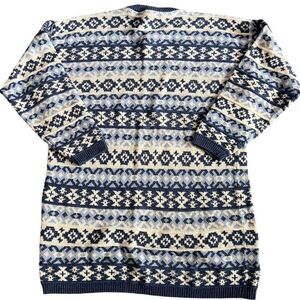 Lands End Vintage Women’s Small 100% Cotton Blue Fair Isle Sweater