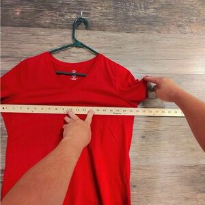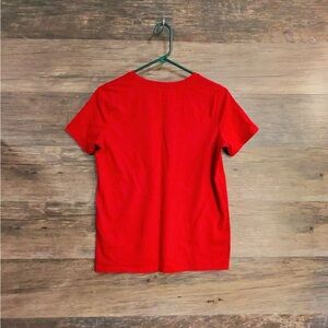 Vibrant red tee with a flattering V-neck. Perfect for everyday style.