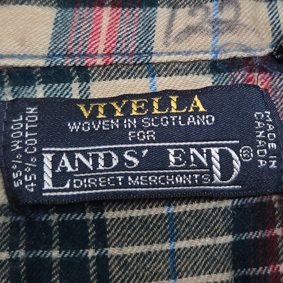 Lands' End Viyella Plaid Flannel Shirt Men's Wool Blend Button Down Size L Tall