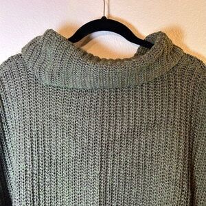 Lands End W Medium CableKnit Baggy Green Cowlneck Fisherman Boyfriend Sweater