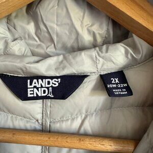 Lands End Wanderweight Packable Down Puffer Coat Long Light Gray 2X $239