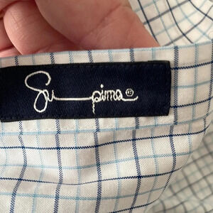 Lands End White Blue Button Down Supima Cotton Shirt Button Front Long Sleeve