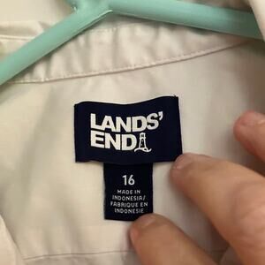 Classic and versatile, this Lands' End white button-up shirt in size 16 is a wardrobe essential. Perfect for layering or wearing on its own, it offers a crisp, clean look for any occasion. Made with quality materials for lasting wear. Don't miss out on this timeless piece!