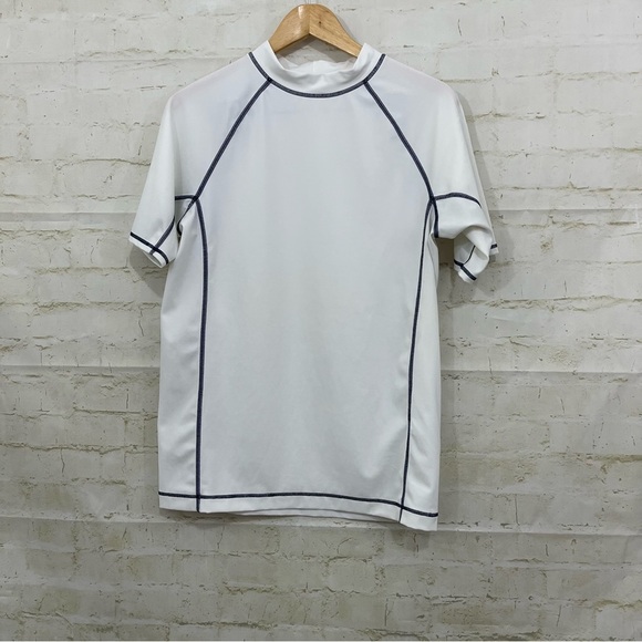 Lands End White Rash Guard Short Sleeve Swim Shirt
