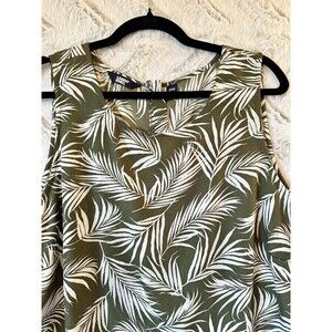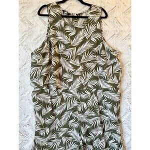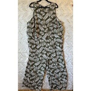 Lands End Wide Leg Jumpsuit Green 22W Palm Leaf Print Sleeveless Resort Cruise