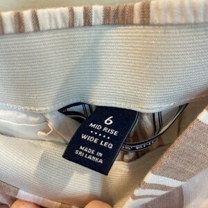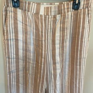 Lands End Wide Leg Pants Striped Mid Rise Womens Medium Linen Blend