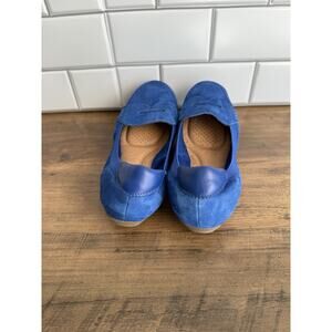 Lands End Woman Blue Suede Penny Loafers Size 7/12 511643