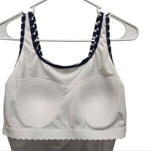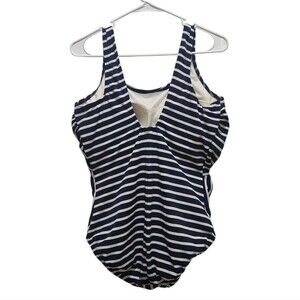Lands End Woman One Piece Swimming Suit Navy Blue White Striped Size 16W Beach