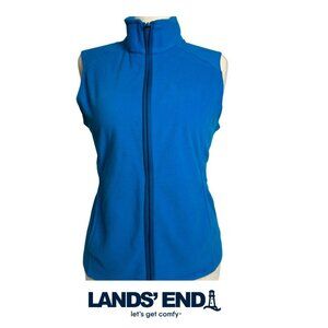 Lands' End Woman Plus Size LP/14/16 Zip-Front Fleece Vest Long Blue