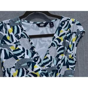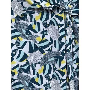 Lands End Woman's Fish Print Stretch Faux Wrap Twist Front Dress NWOT Size S 🐟