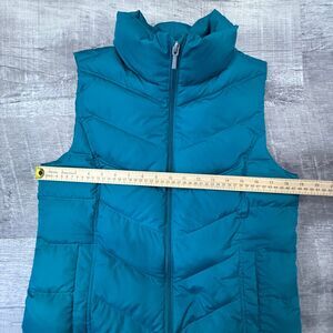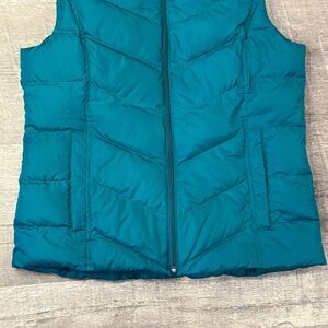 Super Cute! Only worn once or twice Lands End Medium Puffer Vest. A couple small discolorations as seen in last photo and one on inside of collar. Would probably come out with a deep clean.