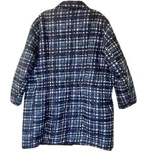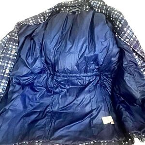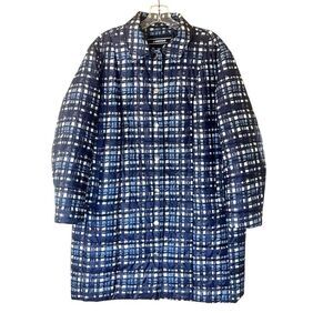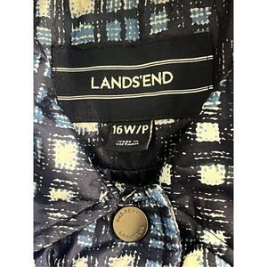 Lands End Woman’s Plaid Print Blue Snap Front Puffer Coat Light Weight Sz 16 W/P