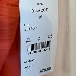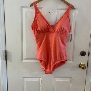 Lands End Woman's Plus-Size Coral Pink Summer V-Neck One-Piece Swimsuit Sz 18
