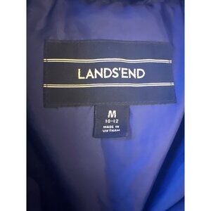 Stay warm and stylish with this Lands' End puffer jacket. Designed for women, the medium-sized coat features a blue polyester shell with down and feather insulation, making it suitable for winter. This jacket's functional design and quality materials ensure durability and comfort during cold weather conditions.